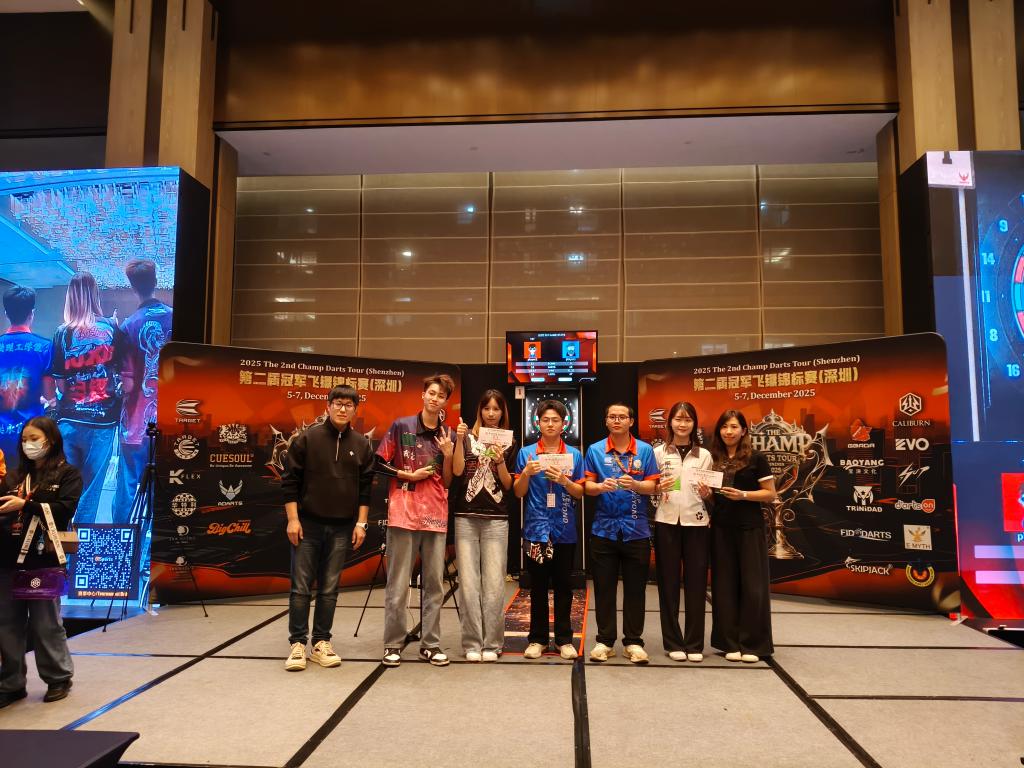 12月5日至7日,2025年第二届冠军飞镖锦标赛(深圳)在深圳机场希尔顿逸林酒店会议厅举行。我校飞镖队荣获TARGET双人501赛第1名,ADARTS米老鼠单人赛第3名,TARGET软式青少年U21公开赛第5名。
